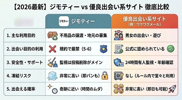 簡単に言うと「そもそもジモティーは出会いサイトじゃないから」です。