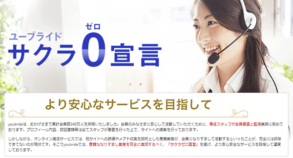 気になる安全性ですが、youbrideにサクラはいません(サクラ事情についてくわしくはコチラ)。