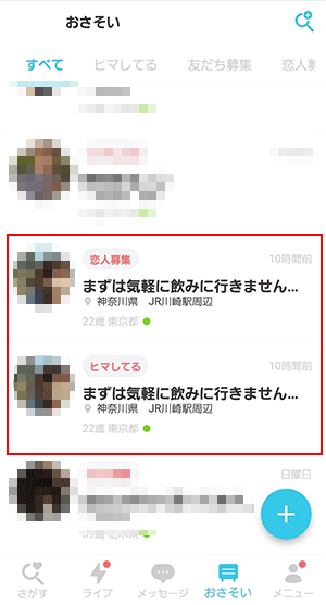 短時間に何度も同じ内容、あるいは似たような「今から会えませんか?」「暇なので誰か!」という投稿を繰り返しているユーザーは要注意。
